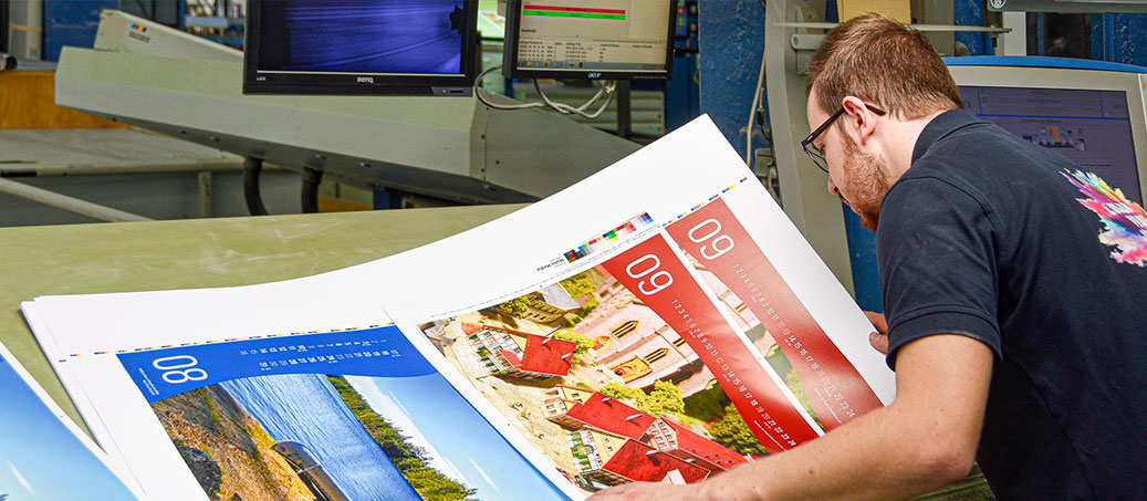 In einer weiteren Besprechung mit der Abteilungsleitung entschieden wir uns final für die bunte Variante. Während ich dem Layout den letzten Schliff gab, übernahm die Abteilungsleitung die organisatorischen Aufgaben. Auch dabei wurde ich gut eingebunden und immer auf dem Laufenden gehalten. »Auf welchem Papier und auf welcher Maschine wird gedruckt?«, »Wann ist der Drucktermin?« und »Wo wird verarbeitet?« – all diese Fragen galt es noch zu klären.