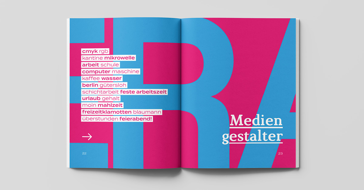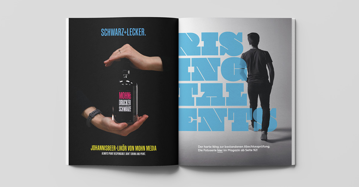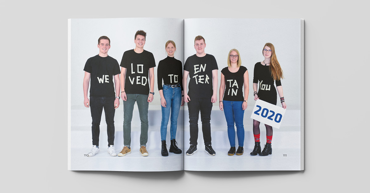 Traditionell haben wir zusammen mit unserer Stufe ein Abschlussbuch über unsere gemeinsame Zeit herausgebracht. Um genau zu sein und unser in der Ausbildung erlangtes Wissen hervorzuheben, handelt es sich in unserem Fall gar nicht um ein Buch, sondern eher ein hochwertiges Magazin. Von der Idee ähnelt es einer üblichen Abi-Zeitung – bloß kommt bei uns jedes kleinste Detail ganz allein aus der Hand der Azubis. Schließlich sind wir hier in einer Druckerei!